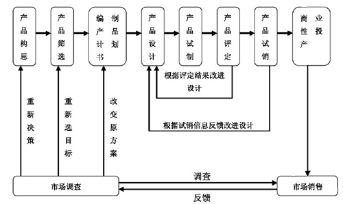根据新产品开发的内容体系,具体可以进一步细分: (1)产品整体性能的开发 这是新产品开发活动中最重要、最基本的一部分。它直接决定着产品的素质,决定着产品的成败。不断扩大产品整体性能开发的深度和广度,对搞好新产品的开发具有十分重要的意义。这其中包括: 质量开发:主要包括质量标准的改进或提高;质量测试手段和保证体系的完善;对存在质量问题的各种原因的分析;开拓产品新的质量性能的途径等。 品种开发:主要包括淘汰或改进老产品的品种;增加新品种、新包装、新剂型;发展品种的新系列、探索新一代品种的发展方向。 功能开发:主要包括扩大产品功能的范围;挖掘产品的新功能或新用途;开辟增加功能、降低成本的新途径。 组方开发:主要包括不同化学药品之间的组方;化学药品与中兽药的复方;药物与营养性添加剂的复方等。 使用方式开发:主要包括改进或增加产品的使用方式;研究产品使用的安全性、方便性;提高药品的使用浓度或半衰期。 (2)产品技术条件的开发 这是新产品的基础性开发活动。它为产品整体性能的开发提供了必要的条件或手段。搞好这方面的开发活动,对提高产品的素质,保证产品的成功开发,具有决定性影响。 科学研究开发主要包括:收集、整理最新科学技术发展成果的资料或情报;研究最新科技成果的应用途径;探讨产品发展的最新技术方向;提出和分析新一代产品的设计方案等。 工艺设备开发主要包括:改进工艺设备的功能;研究工艺流程和新的生产工艺标准;研究最新技术水平的工艺装置等。 原材料的开发主要包括:开拓原材料的新资源、新品种;开辟原材料的新途径;采用新型的绿色高效无残留的原料;改进原料的某些特性、提高原材料耳朵品质和功效等。 (3)产品市场条件的开发 这是新产品效益性的开发活动,它对于产品价值的实现、提高产品的效益性、竞争性具有重要作用。 商标开发主要包括:设计和使用有效的商标;研究商标与产品的关系,提高商标的竞争力;扩大商标宣传,保证商标的使用权;确立名牌商标的信誉等。 广告开发主要包括:探讨设计最富有吸引力的广告内容;扩大广告宣传的新领域、新对象;选择广告宣传的新形式或新媒介;提高广告宣传的针对性和竞争力。 商品名开发主要包括:确定新颖并容易记忆的商品名;商品名应当与药物的功效有某种关联;商品名与相关规定相符合。 销售渠道开发主要包括:增加销售网点、扩大销售能力;选择和设计合理的销售通路;研究和采用有效的销售方法;开拓产品新的销售市场、新的销售对象等。 销售服务开发主要包括:研究有效的销售服务形式;增加新的服务项目;完善销售服务的手段,提高销售服务的质量;探讨进一步为客户服务的可能性。 3、新产品开发的程序 新产品开发的一般工作程序见图2
