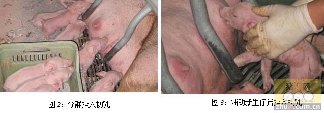 2.加强仔猪初乳摄入的措施 仔猪初乳的摄入状况对于仔猪的健康状况至关重要。而母猪的初乳产生量、仔猪活力与初乳摄入的管理是影响仔猪初乳摄入的三个最重要的因素。对于单个新生仔猪而言,其初乳的摄入量与其是否能够及时找到乳头及吮乳能力有关,同时与新生仔猪的初始体重呈正相关。 2.1 改善母猪初乳产量的措施 通过营养或其它策略来改善哺乳母猪的初乳产生量的报告较少,这可能是因为初乳的产生量较难测量。若分娩前母猪体内的孕激素降低而催乳素升高时,有助于乳汁的生成。据报道,妊娠后期提高饲喂量有助于体内孕激素的清除,同时含有大量纤维素的哺乳后期料可能会提高体内催乳素的含量[9]。但因此方面的科研较少,这些结论均需要进一步的研究来证实。 2.2 初乳摄入管理的措施 通常可通过如下三种措施帮助出生仔猪摄入初乳。 第一:分群摄入初乳。将新生仔猪中个体较大的仔猪放置到另外一个猪栏或保温箱中约1.5小时,以允许个体弱小的仔猪先摄食初乳,减少来自强壮仔猪的竞争压力。采用此法时,应注意两点:要保证先哺乳仔猪的数量足够,保证给予母猪乳房足够的刺激以放乳;先吃初乳的仔猪个体不能太小,若个体太小,也无法摄食到初乳;第二:帮助仔猪摄入初乳。帮助弱小仔猪寻找乳头,并观察仔猪是否能够正常哺乳。第三:收集初乳后人工哺乳。通过人工挤压正在分娩或刚分娩过的母猪的乳头收集初乳后,然后再通过注射器人工喂乳给弱小或活力不足的新生仔猪。收集到的初乳最好马上使用,也可以放在冰箱中冷藏数小时,人工喂乳时,每次15~20mL,在仔猪分娩后数小时内,连续给予2~3次。 因收集初乳后再人工哺乳比较耗时,劳动力投入大,在规模化猪场中较少被采用。但分群哺乳与人工辅助哺乳的方法在辅助新生仔猪摄入初乳方面已取得了较好的应用效果。当新生仔猪的数量多于母猪的有效奶头数或新生仔猪间体重差异很大时,可考虑进行人工寄养,但受寄养母猪的分娩时间应在3天内,被寄养的仔猪应先摄入自己母亲的初乳后再进行寄养,不能在出生的当天就进行人工寄养,因为仔猪只有摄入自己母亲的初乳才能建立有效的细胞免疫。 此外,近年来猪瘟超前免疫措施的推广在一定程度上帮忙发病猪场控制了猪瘟的危害,但因具体执行的失误,往往会导致仔猪初乳摄入不足,或初乳所传递的抗体干扰了猪瘟疫苗毒在靶细胞上的定位。故当猪场猪瘟平稳时,不建议推广猪瘟的超前免疫。