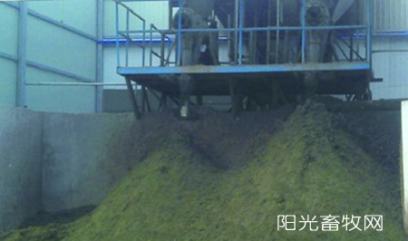 图3 沼液通过喷液器均匀还田 4.粪便处理。固液分离后的固形物全部运到有机肥厂,无害化发酵处理后生产有机肥或土壤培养基。每年可产优质堆肥或有机土壤培养基3万吨。该模式首先将奶牛场牛粪尿等全部废弃物和沼液上清液进行混合、粗筛分后,用泵将混合液泵入公司自主创新固液分离系统。挤出的固体牛粪半干料运至有机肥厂,通过高效翻抛系统进行有机肥发酵(图4、图5),生产的有机肥和有机土壤培养基用于公司的有机基地培养、自控土地改良和肥料市场销售(图6),种植的有机饲料玉米饲喂高产奶牛,其他粮、果、蔬菜部分还用于开发有机农产品并推向市场。另外,一部分牛粪还用于蚯蚓养殖、菇业种植以及蚂蚱养殖,开发牛粪的多渠道利用模式,从而促进生态农业的快步发展。
