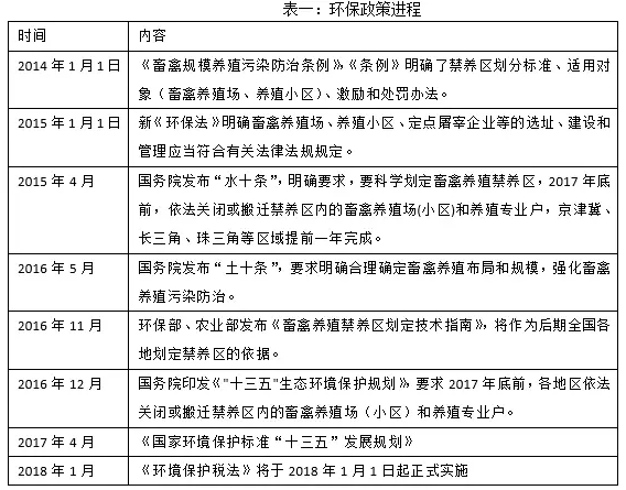蛋鸡养殖盈利与补栏量密切相关,2017年蛋价崩盘下跌,养殖户大幅亏损,1-7月补栏意愿明显减弱;8-11月份蛋价维持高位运行,刺激养殖户补栏意愿。截止2017年11月,育雏鸡补栏量较10月增加7.68%,同比增加43.63%。同时,2018年每只蛋鸡养殖处于盈利期,目前每斤鸡蛋净利润维持高位,预计2018年补栏意愿恐将维持相对高位。(详情请参考下图) 3、环保风暴:散户退出,加速规模化进程 2016年12月,国务院印发《"十三五"生态环境保护规划》,要求2017年底前,各地区依法关闭或搬迁禁养区内的畜禽养殖场(小区)和养殖专业户,2017年禁养区及限养去蛋鸡养殖也受到了影响(详情请参考表一)。中央环保督察从2016年1月在河北开展试点,至2017年8月,第四批中央环保督察已完成进驻四川、吉林等8省份。至此,从2016年到2017年两年的时间,中央环保督察完成了对全国所有省份的覆盖(详情请参考表二)。 蛋鸡养殖环保政策的实施也跟随中央环保督察进程紧密相关,部分禁养区影响较大,以浠水为例环保整改,在禁养地区关停了大概183家鸡场,其中,2017年春节前关停了150多家,春节后到关停20多家,整改了100多家,大概涉及300多万羽蛋鸡。但从目前来看,除了部分禁养区影响较大外,由于环保因素导致全国蛋鸡大幅淘汰情况善未出现,对鸡蛋整体供应暂未起到决定性作用。 |