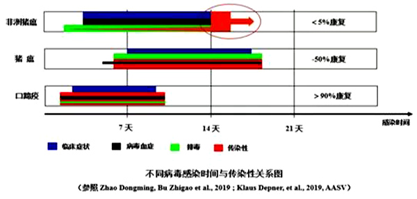 实验室诊断是生物安全评价和复养的核心工具 精准清除的五步骤操作精要 精准清除的五步骤,精要是每一步必须做到位,实现早、快、准、狠,为生物安全补漏: 1、日常监测:第一时间发现问题——有经验有责任的技术人员很关键,精髓在早 2、确诊后应急措施:紧急切断所有传播途径——考验管理水平,精髓在快 哈尔滨兽医研究所ASFV JMS18强毒株攻毒与同圈感染: SPF猪肌注接种不同剂量 Pig/HLJ/18后,2-3天病毒血症转阳,3-4天出现发热等症状,3-5天经口、肛门排毒,6-9天内接种猪全部发病死亡。同居感染猪病毒血症、发病、排毒及死亡时间均延后5-8天不等,病死猪每克组织所含PLD50病毒量达10万以上。 3、高效且可靠的鉴别诊断方法(qPCR)确定传染源——必须的技术能力,精髓在准 4、消灭传染源、切断传播途径:移除病猪,环境消毒——考验管理水平 ,精髓在狠 确诊后第一时间就地处死阳性猪只,注意感染猪尤其大猪移动运送过程中会造成一路污染扩散。首先直接杀灭附着病猪身上的蚊虫,猪尸体石灰粉覆盖,防止渗出,使用塑料布全包裹后运出。 |