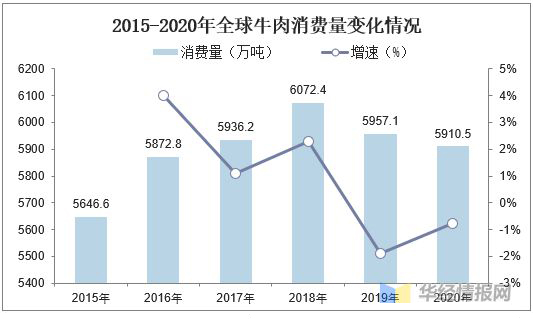 一、全球牛肉产销量 近年来,全球肉类供给呈现上涨趋势,其中牛肉供给占肉类比例到达五分之一,据数据统计显示,全球牛肉产量保持平稳态势发展,2016-2020年全球牛肉产量均保持在6000万吨以上,2020年全球牛肉总产量为6043.1万吨,较2019年下降了1.43%。 2020年全球牛肉产量超百万的国家和地区共有8个,美国牛肉产量为1237.4万吨;巴西牛肉产量为1010万吨;欧盟(27国)牛肉产量为780万吨;中国牛肉产量为678万吨;阿根廷牛肉产量为318万吨;墨西哥牛肉产量为209万吨;澳大利亚牛肉产量为208.5万吨;加拿大牛肉产量为131万吨。 全球牛肉消费量低于牛肉产量,消费量走势与产量走势基本一致。但是2020年由于新冠疫情,全球牛肉减产,但是牛肉消费量并没有受到很大影响。2020年全球牛肉消费量为5910.5万吨,相对于2019年下降了0.78%。 |