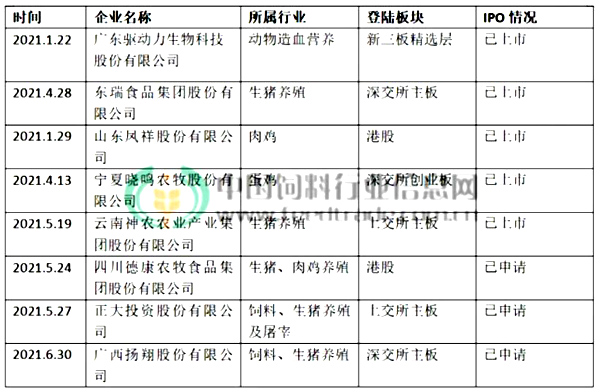 八、天邦股份董事、财务总监、副总裁同时离职,近18亿元出售疫苗和饲料业务3名高层同时离职 2021年7月31日天邦发布高层人事变动,董事长邓成先生申请辞去公司董事长、董事、战略发展委员会委员职务的书面报告,以及副总裁兼财务总监王述华女士、副总裁王维勇先生因个人原因请求辞去公司职务的书面报告。另外推举苏礼荣先生任公司董事长,严小明先生为公司副总裁,曹振先生为公司财务总监,任期至公司第七届董事会届满为止。 天邦先后以5.1亿元、10.8亿元、1.91亿元分别出售疫苗业务、水产和生猪饲料业务 天邦股份3月15日晚间发布公告称,拟将成都天邦100%股权和南京史纪生物100%股权出售给贤丰控股股份有限公司和深圳市宏屹投资发展有限公司,交易共计5.1亿元。 8月29日,天邦股份拟向通威股份转让宁波天邦100%股权、七好生物”100%股权、“宁波生物”100%股权、越南天邦65%股权,交易总额为10.8亿元。 9月21日,天邦股份拟向通威股份出售猪料子公司部分股权并进行长期饲料供应战略合作。交易标的为安徽天邦49%股权、安徽生物49%股权、盐城天邦51%股权、南宁艾格菲51%股权,蚌埠天邦51%股权,湖北天邦51%股权,东营天邦51%股权,交易总额为1.91亿元。 九、双汇“父子交战”,高层人事变动密集 2021年双汇集团因为父子内战闹得沸沸扬扬,起因是一篇某公众号推文《万洪建:我眼中的父亲和万隆》,文中“猪肉帝国”父子矛盾激化,儿子公开举报老子化公为私、偷税漏税、肥美损中、对家不忠等多项罪状,紧接着万洲国际一纸公告,以“由于万先生近期对本公司的财物作出不当的攻击行为”为由,免去万洪建董事职务,并终止其作为公司执行董事及副总裁的职务,即时生效。 8月7日,万洪建在接受媒体访问时称,其与父亲万隆之间的矛盾集中在四个方面: (1)反对双汇国际收购美国史密斯菲尔德公司; (2)双汇集团的新产品发展方向的中式化; (3)万洲国际十四五规划,部分主要指标不切合实际; (4)万洲国际经营重心不应该重美轻中。 结局:万隆辞任行政总裁,继任者是执行董事郭丽军高层密集人事变动,新任11位副总裁。 10月11日,双汇发展发布公告称,公司第八届董事会第二次会议通过了四项聘任议案,马相杰等被聘任为双汇发展总裁、刘松涛为公司常务副总裁兼财务总监,王玉芬为公司总工程师,并新任了乔海莉、何科、赵国宝、宁洪伟、孟少华、贺建民、赛俊选、周霄、郑文广、张斌、张立文11位副总裁,其中张立文为公司董事会秘书,张霄为公司证券事务代表。 十、2021年多家农牧企业冲击IPO |