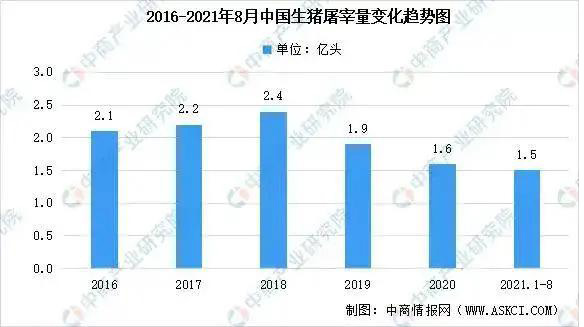 3. 生猪屠宰量 2021年以来,在猪价及肉价均下滑的情况下,生猪屠宰量被赋予期待。数据显示,我国生猪屠宰量较为波动,2018年达到最高值2.4亿头。2020年我国生猪屠宰量达1.6亿头,同比下降约15%。2021年第一季度,我国规模以上生猪屠宰企业屠宰量0.5亿头,同比增39.1%;1-8月,全国规模以上生猪定点屠宰企业屠宰量1.5亿头,同比增长56.4%,增长幅度逐渐扩大。 11至12月上旬国内重点屠宰企业日均生猪屠宰量为16.87万头,与10月高峰相比下滑20.6%。生猪屠宰量的下滑源于生猪供应端与产品需求端的变化,主要原因仍是需求低迷。 4. 猪肉产量 2021年以来,随着前期稳产保供各项政策措施成效进一步显现,新增、改扩建养殖场生猪产能持续释放,生猪生产快速恢复。2020年,全国猪肉产量4113万吨,比2019年减少142万吨,下降3.3%。2021年一季度猪肉产量1369万吨,同比增加31.9%,猪肉产量快速增加,也是导致2021年来猪肉价格持续下降的主要原因之一。2021年二季度生猪供应量将恢复到2017年底的水平。2021年上半年,猪肉产量2715万吨,增加717万吨,增长35.9%。2021年全年共产猪肉5296万吨,同比增加38%。 5. 猪肉进口 鉴于我国猪肉市场供不应求的局势,我国大量从国外进口猪肉,我国猪肉供应国主要以欧盟、巴西、美国等地区为主。另一方面,我国自国外进口猪肉具有关税方面的优惠。我国自2020年1月1日起,将冻结猪肉进口关税由12%暂时下调至8%,有利于增加猪肉进口量,有效缓解国内供应紧缺问题。另外冬季,肉类市场进入消费旺季阶段,肉类产品进口量也随之增加。2021年1-11月中国猪肉进口量354万吨,同比下降10.3%。 |