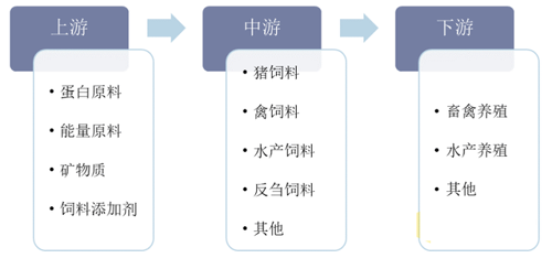 三、饲料行业产业链 从饲料行业产业链来看,产业链主要包括三部分:原料供应-饲料生产-养殖。饲料行业属于产业链中游制造业,连接饲料原料供应与养殖环节。饲料原料主要由蛋白原料(豆粕、鱼粉、棉粕等)、能量原料(玉米、麦麸等)、饲料添加剂(氨基酸、维生素等)等构成。 从行业属性角度看,饲料行业进入壁垒较低,产品差异性较小,下游议价能力较强(尤其是规模养殖比例提升的背景下),饲料价格波动多由原材料端驱动(成本加成定价),销售量则多取决于下游产业景气度。 饲料行业产业链 从上游成本划分情况来看,蛋白原料和能量原料成本占比比较高,分别为20-60%和35-60%。 从下游养殖业来看,随着近年来我国畜牧业的不断发展,养殖规模的不断扩大,使得我国饲料需求不断增加,促进了我国工业饲料行业的发展。据资料显示,2021年末我国生猪存栏4.49亿头,同比增长10.9%;牛存栏0.98亿头,同比增长2.7%;羊存栏3.2亿只,同比增长4.3%;家禽存栏67.9亿只,同比增长0.1%。 |