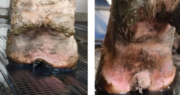 患牛发病部位出现溃疡,呈现亮红色或红至灰色肉芽,病变部位直径>2cm, 此为在悬蹄周围和蹄壁裂缝内及偶尔以蹄底缺损的形式出现,常见于沿蹄冠皮肤/角质交接处,痛感明显,奶牛出现跛行。未能及时有效治疗病情将继续发展。