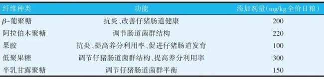导读:在现代猪生产过程中,肠道健康是提高经济效益的关键。日粮膳食纤维除了在传统营养学中具有抗营养作用以外,还可以刺激肠道蠕动,进而缓解母猪便秘。日粮膳食纤维不仅具有调节肠道微生物的功能,还可以从一定程度上替代抗生素来缓解仔猪腹泻。此外,日粮膳食纤维可以调节肠道形态、肠道微生物及其代谢产物,进而促进育肥猪肠道养分消化吸收,提高育肥猪的生长性能并改善其肉品质。文章从日粮膳食纤维的定义和分类展开,综述了日粮膳食纤维对母猪、仔猪和育肥猪的肠道屏障功能,肠道微生物及其代谢产物如短链脂肪酸等方面的积极调节作用,旨在为日粮膳食纤维在猪生产中的应用提供理论参考。 一直以来,日粮膳食纤维被认为是抗营养因子,干扰营养物质消化吸收,对动物健康有负面影响[1]。随着对日粮膳食纤维研究的不断深入,研究发现,日粮膳食纤维对动物的营养健康和生产性能有积极影响[2]。肠道是猪重要的消化和免疫器官。日粮膳食纤维可以改善母猪便秘及便秘所引起的肠道微生物紊乱,缓解仔猪腹泻且有一定的“替抗”作用,促进育肥猪消化吸收以提高其生长性能。日粮膳食纤维对猪肠道健康的调节作用至关重要。文章从日粮膳食纤维的定义和分类展开,综述了日粮膳食纤维在猪生产中对母猪便秘、仔猪腹泻和育肥猪生长性能、肉品质等方面的积极调节作用,旨在为日粮膳食纤维在猪生产中的应用提供参考。 1、日粮膳食纤维概述 1.1 日粮膳食纤维的定义 Hipsley[3]首次提出日粮膳食纤维(dietary fiber,DF)的定义,“膳食纤维是构成细胞壁且不被消化的部分”。Trowell[4]将日粮纤维定义为“植物细胞中能抵御人类消化酶降解作用的一类结构成分”。诸多学者对日粮纤维的定义不完全一致。国际食品法典委员会对日粮膳食纤维最新提出的定义为“不能被小肠内生酶水解,具有10 个或以上单体链节的碳水化合物和天然存在于食物中的可食碳水化合物多聚体”。 1.2 日粮膳食纤维的分类 日粮膳食纤维可以根据其溶解度、作用、纤维来源进行分类,其中以其溶解度分类的方式较常用。日粮膳食纤维根据溶解度不同可分为可溶性膳食纤维(SDF)和不溶性膳食纤维(IDF)。SDF 包括β-葡聚糖、可溶性阿拉伯木聚糖(SAOA)、果胶、低聚糖和多聚果糖等,这类纤维不溶于80%乙醇可溶于水,又可被大肠微生物分解;IDF包括木质素、纤维素、半纤维素等,不溶于水但可以被大肠微生物酶分解。 2、猪日粮中常用膳食纤维 2.1 猪日粮中常用SDF 猪日粮中常用SDF 主要包括β-葡聚糖、可溶性阿拉伯木聚糖(SAOA)、果胶、低聚果糖、半乳甘露聚糖等。SDF 对猪有抗炎、改善肠道形态、调节肠道菌群、增加免疫力等功能,具体功能和添加剂量见表1。 表1 猪日粮中常见SDF的功能及添加剂量 |