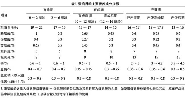 2 日粮配制要点 2.1 确定日粮类型 根据当地市场玉米、豆粕替代原料的供应情况和市场价格,综合考虑性价比,最终确定适宜的饲料原料和饲料添加剂,并确定日粮类型。 2.2 合理设置日粮有效能水平 参考有关饲养标准(GB/T 5916)或不同厂家蛋鸡品种(品系)饲养手册,结合蛋鸡不同生理阶段的特点,首先确定所配制日粮适宜的有效能水平,根据品种(品系)推荐的有效能需要量,确定其他营养成分的相应比例。 2.3 配制基于可利用氨基酸的低蛋白日粮 针对蛋鸡不同生理阶段,选用合适的氨基酸平衡模式。按照饲料原料中氨基酸实测值(湿化学或者近红外方法)或者数据库中可利用氨基酸(如标准回肠氨基酸消化率) 数值,计算出以可利用氨基酸为基础的日粮配方。合理补充必需氨基酸,并考虑其与非必需氨基酸、小肽之间的平衡。 2.4 适当考虑其他营养素平衡 包括能氮平衡、脂肪酸平衡(补充亚油酸或不饱和脂肪酸)、维生素平衡、微量元素平衡、电解质平衡等。此外,还要兼顾考虑营养素来源、能量饲料组合、蛋白饲料组合等。 2.5 合理选择和使用酶制剂 针对玉米、豆粕以外原料的抗营养因子种类和含量,选择适宜的酶制剂及其组合,如植酸酶以及木聚糖酶、β-葡聚糖酶等非淀粉多糖(NSP)酶和纤维素酶等。 2.6 合理使用其他添加剂 小麦中的呕吐毒素、花生粕中的黄曲霉毒素等会损害动物健康,可通过添加霉菌毒素脱毒剂或降解剂来消除或缓解。库存期较长的谷物由于发生氧化和结构变化,会降低养分消化率,影响有效能值和营养素效价,可添加抗氧化剂予以预防。蛋鸡饲料中黄玉米用量降低或者使用非玉米原料时,可根据需求补充批准使用的天然色素或者化学合成色素类饲料添加剂。蛋鸡日粮主要营养成分指标见表 3。 3 蛋鸡饲料玉米豆粕减量替代方案示例 3.1 小麦和糙米替代玉米 蛋鸡育成期和产蛋期日粮中,在补充油脂和添加酶制剂的情况下,小麦和糙米可完全替代日粮中的玉米。建议使用小麦和糙米组合替代 40% ~ 60% 的玉米,玉米用量降至 20% 以下。产蛋期日粮中,小麦和糙米替代玉米时,需要补充色素。蛋鸡育雏期日粮中,建议仍保留 20% 左右的玉米。 |