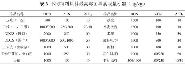 2 样品检测 样品由安佑各分子公司品管部实验室采用荧光免疫层析法进行检测,对检测结果在限量值附近或疑似超标的样品由安佑集团中心实验室进行确证检测。 3 判定依据 三种霉菌毒素限量标准见表3,样品毒素含量超过最高限量值,即判定为超标样。 4 检测结果与分析 4.1 饲料原料霉菌毒素污染概况 注:轻度污染:超标率0%~2%;中度污染:超标率2%~5%;重度污染:超标率>5%。 2025年11月饲料原料霉菌毒素污染情况见表4,饲料原料样本霉菌毒素污染超标率为4.3%,达中度污染;其中DON超标率为3.7%,超标样中检测最大值为6987.03µg/kg,来源于东北产地喷浆玉米皮;ZEN超标率为0.7%,超标样中检测最大值为3808.44µg/kg,来源于山东产地玉米蛋白粉;AFB1超标率为0.9%,超标样中检测最大值为115.32µg/kg,来源于山东产地花生粕。 不同原料霉菌毒素污染超标率见图1。本月各原料霉菌毒素污染多为DON超标所致,DON总超标率达3.7%。玉米霉菌毒素污染超标率为9.3%,达重度污染;其中DON、ZEN、AFB1超标率分别为7.6%、0.6%、1.6%,达重度、轻度、轻度污染。玉米副产物霉菌毒素污染超标率为7.4%,达重度污染;其中DON、ZEN、 AFB1超标率分别为5.5%、3.7%、0.5%,达重度、中度、轻度污染。DDGS霉菌毒素污染超标率为0.9%,达轻度污染;其中AFB1超标率为0.9%,达轻度污染。麸皮霉菌毒素污染超标率为0.5%,达轻度污染;其中DON超标率为0.5%,达轻度污染。小麦霉菌毒素污染超标率为0.9%,达轻度污染;其中ZEN超标率为2.6%,达中度污染。小麦次粉、大麦、米糠霉菌毒素污染均未出现超标情况。 |