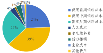 2.生产成本核算 安徽牧丰农业科技有限公司所有饲草料全部外购。育肥前期日均饲料成本约17.4元,包括精饲料成本9.78元、粗饲料4.61元及预混料成本3元,前期120天合计约2088元。育肥中期日均成本约27.5元,其中精饲料17.02元、粗饲料7.75元、预混料2.7元,中期120天合计约3300元。育肥后期日均成本35.8元,其中精饲料22.30元、粗饲料11.08元、预混料2.4元,后期60天合计约2148元,全周期饲料成本约7536元/头。 在饲料成本基础上,附加人工成本300元/头、水电燃料费100元/头、折旧摊销300元/头、金融成本200元/头,其他费用100元/头,共计约1000元/头,合计全周期总成本约8536元/头,育肥期公斤增重成本约17.07元。 图1.2 生产成本构成 三、模式特点与适用条件 精饲高效肉牛育肥模式的核心特征是通过适当提高精料比例,保持高日增重,以缩短育肥天数,加快生产周转。该模式能够在较短时间内达到出栏体重,对固定成本摊薄效果明显、资金周转快,更适合经济实力雄厚、技术优势明显的大中型育肥企业。另外,该模式需要较稳定的精饲料供应体系和完善的TMR饲喂管理,以避免精料水平过高导致瘤胃紊乱、酸中毒和采食波动。同时,后期饲料转化率下降较快,达到目标体况后需及时出栏,避免延长育肥时间导致成本增加。 案例二:粗饲均衡肉牛育肥模式 一、生产模式概述 精饲料在肉牛育肥成本中占比较高,其日投入量直接影响养殖的资金压力与效益表现。为降低每日精料投入强度、缓解流动资金负担,中小规模场和散养户常采取低精料饲养策略。在确保牛只达到700—750公斤出栏体重的基础上,适当降低日粮中精料比例,育肥周期由常规12个月延长至14—15个月,探索形成“以时间换效益”的均衡育肥模式。 二、具体案例介绍 1.育肥技术模式 河北围场满族蒙古族自治县景鑫旭发农牧发展有限公司以华西牛育肥为主,按照牛只体重变化将育肥过程划分为三个阶段,并根据各阶段能量与蛋白需求差异,设置较低的精料供给上限,同时保证粗饲料的连续、充足与稳定供应。育肥前期(约200—400公斤)重点促进骨架生长,目标日增重约1.0—1.2公斤,育肥周期约6个月。日粮组成包括平均2.5公斤精料、3公斤黄贮和4公斤玉米秸秆。育肥中期(约400—500公斤),目标日增重提升至约1.5公斤,育肥周期约2—3个月。日粮中精料量增加至4—4.5公斤,同时搭配5公斤黄贮和5公斤玉米秸秆。育肥后期(约500—750公斤),目标日增重约1.2—1.3公斤,育肥周期6—7个月。精料增加至6公斤,配合7.5公斤黄贮和5公斤玉米秸秆。 |