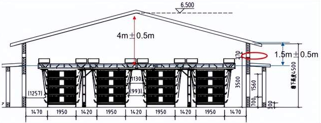 肉鸡产业是畜禽养殖中规模化程度最高的产业。发展肉鸡立体高效养殖模式,以节地、节粮、节能、高效、生态为目标,集成集约化、数智化、精准营养、生物安全和循环绿色等高效养殖技术,对于提升我国肉鸡综合生产能力和市场竞争力,建设生产高效、资源节约、环境友好的现代肉鸡产业具体重要意义。该技术模式通过优化配置肉鸡立体养殖设施设备,可以提高单位土地面积产出;配套数字化、智能化鸡舍环境控制装备系统,能够改善肉鸡饲养环境和生存条件;集成肉鸡饲养管理技术、节粮饲料技术、疾病防控技术,有助于提高肉鸡健康水平和生产性能;集成粪污收集和资源化利用技术,实现种养循环、节能减排。相比传统网上平养模式,肉鸡立体高效养殖单栋鸡舍饲养量可从1~2万只提高至3~6万只,单人饲养量可从0.5万只增加到最高10万只。目前该技术模式在白羽肉鸡生产中已覆盖70%以上的规模养殖场,在黄羽肉鸡和小型白羽肉鸡生产中推广应用潜力也十分巨大。 一、养殖工艺 (一)养殖规模和饲养密度 肉鸡立体养殖全进全出一段式养殖工艺,单栋舍饲养规模一般为3~6万只,单场养殖规模约30~50万只。每只成鸡的占位面积不低于0.05平方米,即每平方米笼底面积的饲养量应小于20只,保证直至出栏前的适宜空间需求。高温季节应适当的降低饲养密度。 (二)舍内布局和笼具要求 鸡舍建筑需要具有良好的封闭、保温性能,采用密闭式鸡舍设计,以便控制舍内环境,达到节能降耗的目的。标准设计鸡舍总长80~90米,宽15~18米。建议采用装配式钢结构,并根据当地气候条件设计鸡舍保温方案,拼接处应做好密封填充处理,防止外界空气通过拼接缝隙渗透。 笼具宜采用叠层式笼具,一般3~5层为宜。材质镀锌防锈,结构稳定,使用寿命大于15年。每组笼具间设置0.9~1.5米过道;单组笼具两列中间须设置0.35~0.5米的通风道;单个笼宽度为0.7~0.9米,长度为1.1~1.4米(图1)。 图1 标准化立体养殖鸡舍设计方案(4层笼养) (三)配置成套饲养设备 1、饲喂设备 舍内采用自动化行车式喂料系统,配备故障急停和报警装置。喂料系统应采用可调式加料漏斗和分料漏斗,可根据肉鸡不同生长期体型变化进行喂料量的调整,避免饲料浪费,减少粉尘,提高采食均匀度。笼具采食口应可调节,以适应不同日龄肉鸡采食,降低人工喂料的劳动强度,减少人工操作造成鸡只应激反应。每栋鸡舍配套可储存2天以上饲料量的独立料塔。以单栋饲养量5万只为例,饲养后期采食量为每只鸡150克/天,饲喂系统应保证每天至少提供7.5吨饲料,料塔容量应在15吨以上。 |