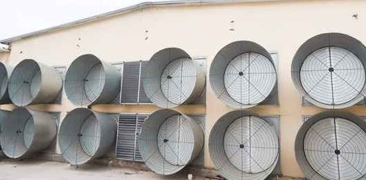 二、鸡舍环境控制和管理 (一)环境控制设备 立体养殖采用的环境控制设备大体上与平养模式类似,都包括风机、湿帘、加温系统(风暖或水暖)、通风小窗、导流板和环控仪等。但层叠式笼养时养殖密度大幅提高,配制设备的复杂度大幅提高。需要根据具体饲养量及鸡群体重,按照环境参数细致计算各种设备需要的数量以及安装位置。需要对饲养鸡群所需要的最大最小通风量、风速、通风阻力等进行仔细计算,还需要兼顾考虑进风位置、新进空气温度、通风死角、温差大的问题。配置的环控仪最好是具备智能调控功能的程控仪。 鸡舍多施行负压通风,每幢鸡舍后部需配备多组高效风机,推荐使用拢风筒风机,提高通风效率(图4)。两侧墙体安装通风小窗,规格约为30cm×60cm,在提高通风量的同时保证舍内气流稳定。根据不同日龄的通风需要,通过控制小窗角度调整侧面进风量。夏季采用湿帘进风降温时,建议采用湿帘分级控制,防止湿帘开启后湿帘端温度下降过快。应根据鸡舍笼具高度、顶棚高度等调整湿帘和侧墙小窗进风口导流板开启角度,保证入舍新风进入鸡舍顶部空间形成射流,使舍内外空气达到较好的混合效果,避免入舍新风直接吹向笼具,造成鸡群冷热应激。纵向通风控制方案见图5。 图4 拢风筒风机 育雏供暖可使用地暖或者暖风机均匀供热方式,应用多排联控保温门,降低能耗提高保温性能。冬季较为寒冷的地区,建议在鸡舍加装墙体阳光棚和热回收装置,可以大幅度降低供暖能耗。 图5 通风控制方案 |