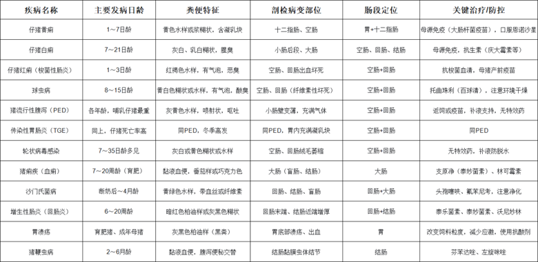常见腹泻类疾病鉴别表格