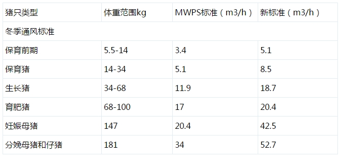 通过上面的介绍不难看出,针对不同气候条件,不同猪舍,不同饲养条件,不同通风系统,不同猪只类型的通风量是不同的。所以在选取猪场通风指标时应考虑指标的计算依据和对应的气候、猪舍饲养条件等。例如2015年美国伊利诺伊大学采用美国最新研究的猪产湿量参数,根据湿度平衡调整了猪只冬季通风量标准(该标准基于美国伊利诺伊州中部气候)。下表是新标准和美国中西部规划服务MWPS标准的对比。 表1 美国猪舍冬季通风建议指标 另外一些通风建议指标的可能是基于其他条件计算的,例如德国的DIN18910标准,是基于二氧化碳3000ppm作为控制指标计算的最小通风指标。 针对猪舍冬季通风指标如何选取这个问题,笔者认为各类冬季通风指标只是建议值,具体某个项目的指标选取要基于当地气候条件和猪舍情况具体分析,不能盲目套用。操作管理中基于实际环控效果调整最小通风指标是必要的。 问题3:冬季通风进风口如何配置? 冬季通风最根本的目的是保障猪活动区域的空气质量和温湿环境,这就要求猪舍内形成良好的气流分布,而进风口的选配是其中最关键的点。 猪舍冬季进风口有各种类型,侧墙进风口、吊顶进风口、通风管、通风走道、多孔吊顶板等都属于进风口。其中吊顶进风口、侧墙进风口、通风管都是通过快速的气流进风的方式,这种选配的核心在于设定进风口的间距,或者说一个进风口可以覆盖多大范围。进风气流吹多远(Throw射程)同新风温度、舍内温度、进风口的尺寸和类型、风口距离吊顶的距离等很多因素都有关系,计算相对复杂。为了方便应用美国一些专家提供一个简单算法,静压差每增加2.5Pa,气流可以多吹0.6m。因此,如果系统运行在10Pa静压差,气流将吹2.4m。在 15Pa和25Pa的静压差,则预计分别吹3.6m和 6m。例如1个12.5m宽猪舍中间走道设置一排有驱动两开口进风小窗,那就必须要达到20Pa的静压差,才能让气流吹到侧墙,如果系统运行在10Pa静压差,新风可能在围栏中部就落到了猪活动区,这就会出现通风问题。这也是为什么猪舍冬季通风对于猪舍的气密性要求很高的原因,气密性不好就很难达到理想的静压差。 吊顶进风口常用的无驱动的四开口和有驱动双开口的进风小窗。无驱动四开口进风小窗,因为没有驱动调节,没有配重,很难在小通风量时形成较大静压差,布置这种进风口时,只能按照每个进风口最大覆盖6mx6m的区域。有驱动两开口进风小窗因为可以通过驱动有效调节进风口开口大小,可以实现较大静压差,布置这种进风口可按照每个进风口最大覆盖12mx8.5m的区域。 图2 无驱动四开口进风小窗 |