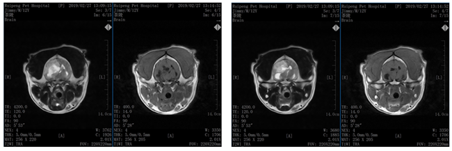 由于宠主考虑宠物生活质量,不考虑进一步诊断和治疗,选择安乐我们就此探讨。目前犬脑部肿瘤发生率较低,犬的继发性脑肿瘤高于原发性脑肿瘤,分别年龄在9岁以上较多见,另外品种方面上金毛猎犬、拳狮犬较倾向于原发性脑肿瘤,而犬最常见的原发性的脑肿瘤为脑膜瘤,如果是脑膜瘤的话,可以手术切除达到减压的效果,结合放射疗法可以延长原有寿命的一倍,目前化疗药物运用于小动物脑肿瘤的研究有限可以配合类固醇也可以延长一段时间寿命。