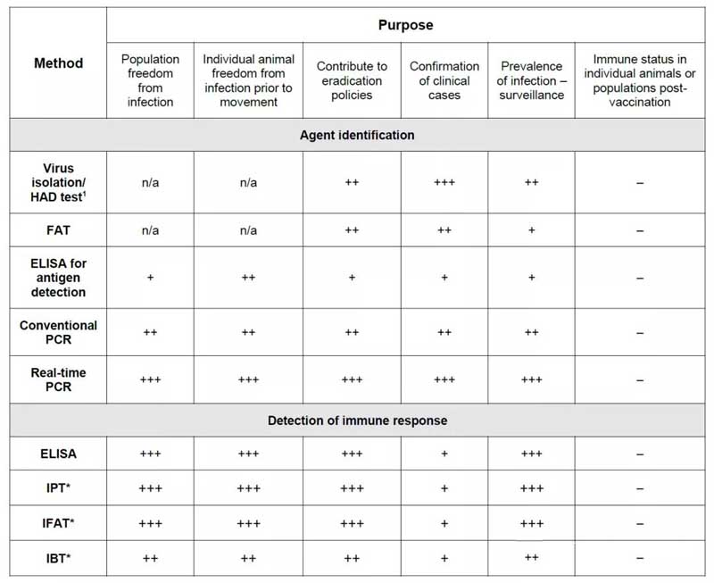 2、OIE关于非洲猪瘟的检测方法 2021.5月更新的手册我发现多了一段文字: “Animals that have recovered from either acute, subacute or chronic infections may potentially become persistently infected, acting as virus carriers. The biological basis for the persistence of ASFV is still not well understood, nor it is clear what role persistence plays in the epidemiology of the disease.” “动物可从急性、亚急性或慢性感染中恢复,作为病毒携带者,成为潜在的持续感染者。ASFV持续感染的生物学基础仍未被充分了解,也不清楚持续感染在疾病的流行病学中扮演的角色。” 我读这段新增的文字感受到一股无奈和绝望,你可以想象一下作为存在了100多年的病毒,很多研究了一辈子非洲猪瘟的研究者发现自己还有这么多问题不清楚,中国功不可没。 OIE非洲猪瘟的检测技术 3、非洲猪瘟检测的确诊方法 3.1 病原检测的确诊方法 病原确诊的金标准有两个:一个是分离到病毒,另一个是基因测序获得特征性的病毒序列。除此之外使用数字PCR方法获得病毒的绝对拷贝数也是一种方式。 ASFV数字PCR检测结果 (北京中科基因技术股份有限公司提供) |