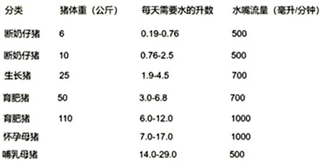 水作为猪必须的其它营养物质之一,是猪的日常生活所不可或缺的,也被誉为“最便宜”的养分,但由于输水管道都是不透明的,很多养猪朋友也就忽视了猪群的饮水健康,轻者影响猪群的正常生长,重者甚至可能引起猪群死亡,那如何给猪提供健康充足的饮水呢? 根据测定,正常情况下成年猪体内的水分占猪总体重的55%-75%,仔猪水分占比超过70%,最高可达到90%,后期随着猪群的生长体内水分的含量逐渐下降,当体重超过200斤时,猪体内水分含量降低至50%左右。水在猪的日常生活中发挥着不可替代的作用,不仅直接构成细胞、血浆、组织液等机体成分,同时也在猪体内食糜的疏松,养分的吸收、运输、分解、合成等方面发挥着不可替代的作用。此外因为水的比热比较大,导热性能好,一方面可帮助猪体散发体内积聚的热量,另一方面也可保护猪体温的骤然下降,对于猪体温的调节也有重要作用。所以要想保证猪群的正常生长,给猪群提供充足健康饮水是非常关键的。 一、正常猪群的饮水量 猪的日龄、阶段、气温变化以及饲料类型都会对猪群的饮水量产生影响,通常计算猪的饮水量需要通过采食量进行换算,一般猪饮水量和采食量的比例为2.5-3,而猪的采食量又可以根据体重换算,保育猪的采食量为体重的4-5%,育肥猪的采食量为体重的3-4%,所以正常情况下猪每天的饮水量为体重的10-15%,但因为哺乳母猪需要提供奶水所以饮水量更大,可达到20kg/天甚至更高,具体各日龄的饮水量可参考下表: 二、饮水不足和过量对猪的危害 猪体所需要的85%以上的水分都是通过饮水来获得的,若是因为种种原因导致猪群饮水不足就会引起猪消化系统的消化能力下降,生长发育受阻。因猪体缺水后,猪肠道蠕动就会减缓,导致猪饲料中的营养成分无法完全吸收,资料消化利用率下降,哺乳母猪还会引起奶水不足,仔猪生长缓慢甚至腹泻等问题。据统计,育肥猪缺水会导致日增重下降5.5%,仔猪缺水会导致日增重下降18%。 因水在猪体内担负着疏松的作用,所以饮水不足很容易导致猪体内新陈代谢产生的废物无法正常排出体外,这些废物积聚在体内就相当于是毒素会对猪身体造成严重的损伤。这就是为什么哺乳仔猪发生腹泻后,一旦引起脱水死亡率接近100%的重要原因。 俗话说“过犹不及”,若是猪群饮水过量对猪体同样有危害,若是因为某些原因猪饮水过多,体内的水分无法通过肾脏及时排出,那么就会导致猪血液被稀释,血液中盐类的浓度下降,水分就会从血液进入细胞和器官中,导致器官的水肿,而表现出红尿、体温下降、呼吸加快、呕吐、鸡肉痉挛、四肢呈划水动作等“水中毒”症状。 |
