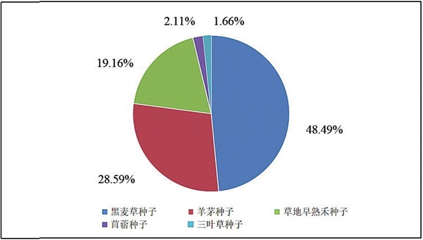 图4 2024年-2025年1-3月我国草种子月度进口情况 图5 2025年1-3月我国草种子进口结构 |