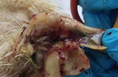 四、诊断过程 (一)初步诊断 根据养殖场的发病情况(30日龄白羽肉鸡发病,发病率高,未接种病毒性关节炎疫苗)、典型临床症状(跛行、关节肿胀、肌肉坏死)及剖检病理变化(关节腔渗出物、骨骼肌出血坏死),初步怀疑为白羽肉鸡病毒性关节炎。 (二)实验室确诊 为进一步明确诊断,采集病鸡的关节液、病变骨骼肌及肝脏组织,送专业兽医实验室进行检测: 血清学检测:采集发病鸡群和同场未发病鸡群的血清样本,采用酶联免疫吸附试验(ELISA)检测禽呼肠孤病毒抗体。结果显示,发病鸡群的抗体阳性率达 92%,且抗体滴度显著高于未发病鸡群,进一步证实鸡群感染了禽呼肠孤病毒。 综合初步诊断和实验室检测结果,最终确诊该白羽肉鸡群发生的是禽呼肠孤病毒引起的病毒性关节炎。 五、病因分析 1.疫苗免疫缺失:该批次肉鸡未接种病毒性关节炎疫苗,鸡群缺乏特异性抗体,对禽呼肠孤病毒易感,这是本次发病的主要原因。 2.环境因素:发病前持续降雨导致养殖场湿度超标、通风不良,垫料潮湿、粪便堆积,造成病毒在环境中大量滋生和传播;同时,恶劣环境降低了鸡群的免疫力,为病毒感染创造了条件。 3.饲养管理不当:鸡群饲养密度较大,易造成鸡只之间的相互接触传播;饲料中蛋白质、维生素及矿物质含量不足,影响鸡群的体质和抗病能力,加重了病情。 六、综合防治方案 (一)治疗措施 目前尚无特效治疗药物,主要采取对症治疗和控制继发感染的措施: 1.抗炎消肿:对发病鸡只肌肉注射地塞米松注射液(0.1mg / 羽),每日 1 次,连用 3 天,缓解关节肿胀和疼痛;同时在饮水中添加维生素 C(0.2g/L)和葡萄糖(5g/L),黄芪多糖补充营养,增强鸡只抵抗力。 |