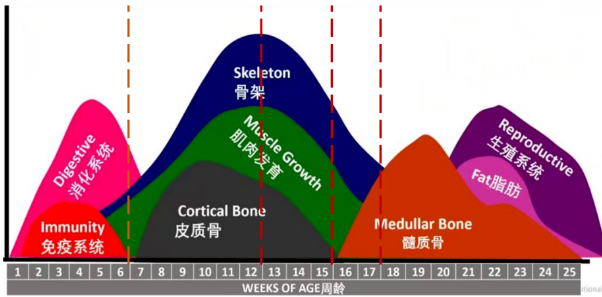 同时,青年期也是免疫与生殖系统的重要奠基期:4-8周龄完成免疫器官主要发育,5周龄体重达标度直接影响产蛋期抗病力与死淘率;13-18周龄生殖系统逐步启动,其调控质量直接决定开产日龄与产蛋高峰爬升速度。