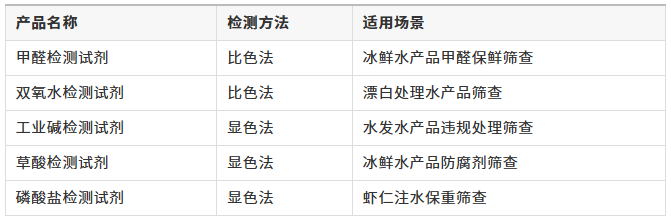 风险四:养殖环节违禁兽药残留 活鱼流通风险不仅在运输环节,养殖源头同样存在系统性风险: 三、监管难点:为什么这个问题长期存在 1. 法规空白,无从定性 丁香酚、MS-222既不在允许使用名单,又不在禁止使用名单,执法缺乏明确依据,处罚力度极为有限。 2. 检测空白,难以发现 常规水产品抽检项目不含丁香酚、MS-222,市场日常检测无法覆盖,等于给违法行为开了绿灯。 3. 链条隐蔽,溯源困难 生产方以"食品添加剂"名义出货,销售方以"三无"小包装流通,人货分离,责任链条断裂,很难追溯。 4. 市场管理失职 调查中,市场管理人员明知存在问题,却对现场摆放的工业酒精、大桶麻药视而不见,属于典型的监管失职。 四、快检产品推荐:可用于水产品安全快速筛查 结合本次曝光涉及的风险点,以下快检产品可有效覆盖水产流通环节的主要安全隐患: (一)化学污染物检测——运输添加物筛查 特别说明 :针对丁香酚、MS-222,目前市售快检产品尚无对应试剂盒,建议送专业实验室液相色谱检测。此为当前监管的核心漏洞,也是下一步配套标准制定的重点方向。 |