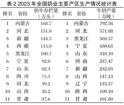 从全国位次看,2023年甘肃省奶牛存栏37.6万头、牛奶产量101.8万吨,均居全国第11位(表2),在西北产区中保持优势地位,但与内蒙古、河北等奶业大省相比仍有差距,凸显出进一步提升产业规模的空间。