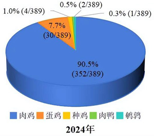 H9均检出于鸡场,以肉鸡场为主(占比92.8%);蛋鸡场检出20例,种鸡场检出7例。3~6w肉鸡为主要感染群体,占比87.3%,主要为双A和三黄鸡;其中,三黄鸡感染集中在3~4w,双A肉鸡感染集中在5~6w。