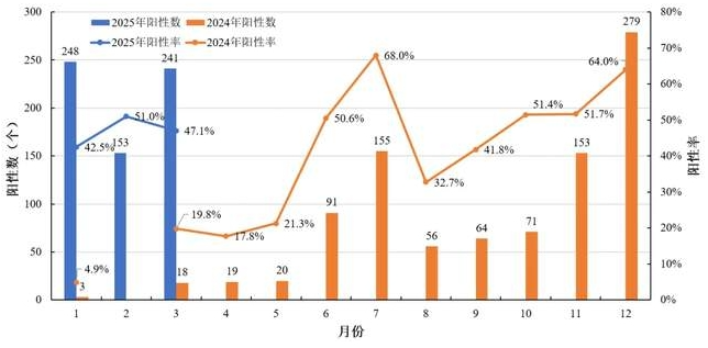 4. 禽呼肠孤病毒(Avian reovirus, ARV) 共检出642个ARV阳性场,阳性率46.0%,去年同期仅检出21个。临床上ARV感染较为严重。 图36. ARV时间分布 24年同期,在山东和河南的肉鸡以及山东、江苏和辽宁的种鸡上检出ARV,进入25年,ARV的检出范围扩大,共有17个省和自治区检出ARV,表明ARV在我国鸡群中广泛流行。ARV主要检出于肉鸡,占比98.3%;种鸡和蛋鸡有少量检出。肉鸡ARV分布在16个地区,其中一半以上地区的场群阳性率在50%以上,凸显ARV在肉鸡中流行的普遍性;山东254个肉鸡场群检出ARV,场群阳性率高达56.3%。双A肉鸡是ARV的主要检出宿主,占比63.2%,三黄鸡和科宝也各有10%以上的检出。24年蛋鸡没有ARV检出,但25年在海兰褐和京红蛋鸡场均有检出,分布在山东、辽宁和宁夏。 图37. ARV宿主——地区分布 |