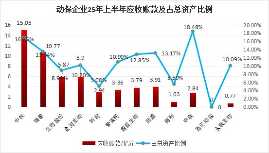 在盈利表现上,12家上市企业中仅申联生物处于亏损状态,其余11家均实现盈利,行业盈利面达91.7%。 从盈利规模看,瑞普生物以2.56亿元的净利润位居首位,其宠物业务成为重要增长极——上半年宠物供应链及生物制品和药品收入达4.15亿元,同比增长17.94%,其中宠物供应链营收3.76亿元,同比增长18.49%,凸显宠物动保市场的高增长潜力。 从盈利增速看,回盛生物表现最为突出,上半年净利润同比增幅高达325.88%(去年同期净利润为-6469万元),除主营业务改善外,可转债赎回带来的财务费用优化也形成一定助力——本报告期可转债利息计入财务费用同比减少1130.71万元,对净利润增长产生正向影响。 尽管行业内产品同质化、产能过剩导致的“内卷”问题仍存,曾推动动保企业应收账款快速扩张,但2025年上半年行业应收账款管理成效显著:整体规模相对于上期末未出现明显变化,应收账款占总资产比重平均值稳定在11%左右,风险得到有效控制。 从企业层面看,应收账款管理能力分化明显:科前生物表现最优,应收账款占总资产比例仅为5.08%,显著低于行业平均水平;而申联生物应收账款压力较大,占比达18.48%,后续需进一步加强应收账款回收与风险管控。 |
