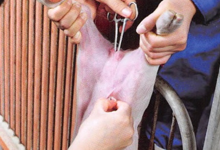 鉴于此,我们根据阴囊疝形成原理,通过1000多头阴囊疝仔猪的实践,创造性地对传统阴囊疝手术进行改进,摸索出一种快速、高效的阴囊疝手术方法。