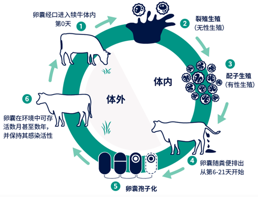 在犊牛养殖过程中,球虫病是威胁犊牛健康的重要寄生虫病之一。了解犊牛球虫的生活史,对于预防和控制球虫病至关重要。今天,我们就带您深入探索犊牛球虫从感染到传播的完整生活史。 一、感染起点:粪口传播 犊牛球虫的生活史始于粪口传播。当犊牛摄入被孢子化卵囊污染的饲料、饮水或舔舐受污染的物体时,卵囊便进入犊牛的消化道。这些卵囊具有厚壁,能够抵抗外界环境,确保其存活和传染性。 二、肠道内的无性繁殖 1、释放孢子囊 孢子化的卵囊进入犊牛肠道后,在消化液的作用下释放出孢子囊。孢子囊进一步释放出子孢子,这些子孢子侵入肠上皮细胞,开始无性繁殖阶段。 2、第一代裂殖子形成 子孢子在肠细胞内发育为裂殖体,通过裂殖生殖产生大量第一代裂殖子。裂殖子破坏犊牛肠细胞后释放,并侵入邻近的肠细胞,继续繁殖。 3、第二代裂殖子产生 第一代裂殖子再次发育为裂殖体,产生第二代裂殖子。这一阶段的无性繁殖使球虫数量呈指数级增长,导致肠道组织损伤,引发犊牛腹泻、血便等症状。 |