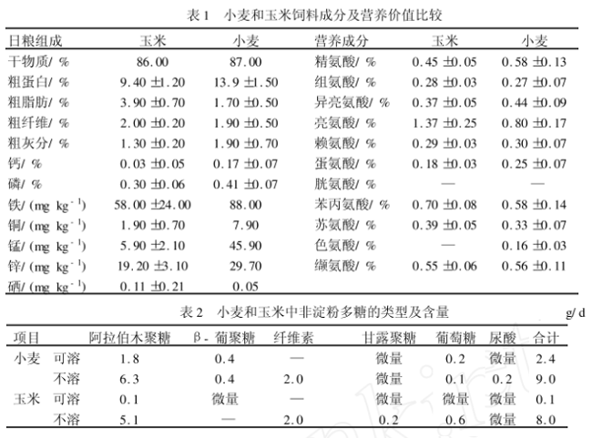 玉米作为家禽配合饲料中的能量饲料,是我国大部分地区饲料配方中不可缺少的组分,小麦虽然是粮食作物,但在饲料中也有广泛的应用。在苏联欧洲和北美等小麦主产区,动物饲料中基本使用小麦作为主要能量饲料,加拿大在畜禽饲料中也使用小麦。我国西部地区玉米产量少,小麦产量高,中原地区和华北地区盛产小麦,用小麦替代玉米作为能量饲料有较大的潜力。面对目前玉米价格不断升高的走势,小麦价格相对较低,其在家禽饲料中的应用越来越广泛。小麦与典型的能量饲料玉米相比有其特殊性。 1 小麦和玉米的营养成分对比 我国小麦的粗纤维含量和玉米相当,粗脂肪含量低于玉米,但蛋白质含量高于玉米,是谷类籽实中蛋白质含量较高,小麦的能值也较高,仅次于玉米在所测的小麦样品中蛋白质含量最高可达16.2%最低为11.0%。其氨基酸含量见表1,必需氨基酸含量较低,尤其是赖氨酸。小麦的含钙量为0.10%~0.24%,高于玉米,含磷量为 0.34 %~0.48%,比玉米高约1倍。小麦对鸡的代谢能为12.7MJ/kg,较中国二级玉米对鸡代谢能13.47MJ/kg明显要低。 2 小麦和玉米作为家禽饲料 2.1 小麦与玉米相比作为家禽饲料的优点 小麦蛋白质含量高于玉米,有的品种甚至高过1倍,赖氨酸含量也较高,蛋氨酸含量高于玉米,而且小麦氨基酸利用率与玉米无明显差别,用小麦替代玉米作为能量饲料时,配合饲料中豆粕的用量可适当降低。小麦总磷的含量高于玉米,而且利用率也高,这是由于小麦中含有植酸酶,能分解植酸获得无机磷;小麦面粉遇水易变得黏稠,是很好的自然黏合剂,有利于制粒;小麦淀粉的糊化温度是籽实中最低 ,小麦为 53~64 ℃,玉米为 61~72 ℃。 |