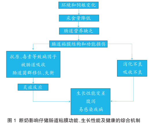 抗生素的大量使用使得细菌的耐药性成为危害公共安全的问题。畜禽养殖过程中使用抗生素产生的耐药性问题也可能通过畜禽产品和环境传导给人类。因此饲料禁抗,养殖减抗是生产绿色安全食品,降低环境耐药菌风险的必然趋势。这里要强调的是,饲料禁抗并不是说在整个养殖过程中不能使用抗生素仅仅是饲料中不能添加抗生素而已。这与无抗养猪(通常指商品代猪从出生到出栏整个养殖过程中不使用任何抗生素)和无抗猪肉(无抗生素残留的猪肉)是不同的概念。毫无疑问,无抗猪产出的肉一定是无抗猪肉,但无抗猪肉不一定来源于无抗猪。 饲料禁抗后至少需要直面两大问题:①如何控制哺乳仔猪和断奶仔猪的腹泻?②如何克服保育后换料应激?欧洲是世界上最早提出饲料无抗的地区。通过总结他们在无抗饲料方面的经验发现,禁抗后第一年料肉比增加、治疗用药量增加,尤其是关节炎和腹泻治疗用药增加明显,这一现象大约会持续一年。现在,我们如何在饲料禁抗后避免再走别人走过的老路,如何才能维持甚至进一步降低料比?饲料配方如何调整?用料方式要怎样改变?如何避免不必要的治疗用药增长?猪场应做如此应对措施?这将是本文要探讨的问题。 1 无抗猪料的配方技术要点 陈代文等(2020)提出的动物抗病营养原理与技术为无抗猪料的配方技术提供了全面的框架性指导。分别从饲料配方要素(营养源、营养水平和添加剂组合)、配方目标(增强肠道健康减少饲源性致病因子、降低病原性致病因子)和技术实现方式(配方变化、料型变化和饲喂方式变化)三个方面着手,达到饲料无抗,且饲料更高效的目的。 1.1 提高采食量的意义 维护肠道健康是断奶仔猪料的核心目标,高采食量、高消化率是实现该目标的根本基础。乳猪断奶后,环境和饲粮改变导致采食量降低,进而引起肠道营养缺乏,肠道粘膜功能受损。肠道结构受损产生的后果就是消化吸收不良,再加上饲料中的抗原(如大豆抗原)毒素被肠道吸收,肠道菌群移位和过度繁殖引起肠道炎症。最终导致生长性能变差,腹泻,甚至生病。 仔猪断奶综合征的发病原理 以上就是仔猪断奶综合征的发病原理(图1)! |