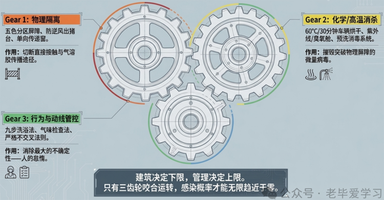 最近又进了猪场,将猪场生物安全流程又走了几遍。总的感受,是生物安全流程越来越优化了,但,还是不完美。之所以这样,是因为制定生物安全流程的人对生物安全的基本原则理解不到位。 猪场生物安全设计原则(部分)这个链接是我写于2019年的生物安全手册的一部分内容,有兴趣可以回顾一下。内容很多,但是最重要的,应该是几个基本原则: 一,生物安全“三大公理” 我相信经过几年的防非实践,大家对概率论都已经有了认识,近几年“做减法”也正是为了降低防非成本,然而,我认为“人本观”还做得不够好。 强调一下:规则的“反人性化”程度越高,执行失败的概率越高,应当以人道原则换取员工100%的规则依从性。 二,生物安全三轮驱动 |